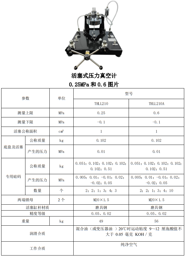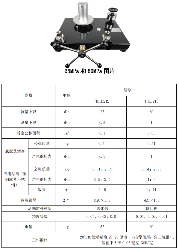THLL系列活塞式壓力計用于檢驗數(shù)字壓力計、精密壓力表、壓力變送器、壓力傳感器等壓力儀器儀表。